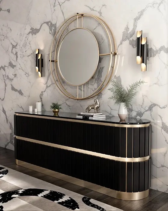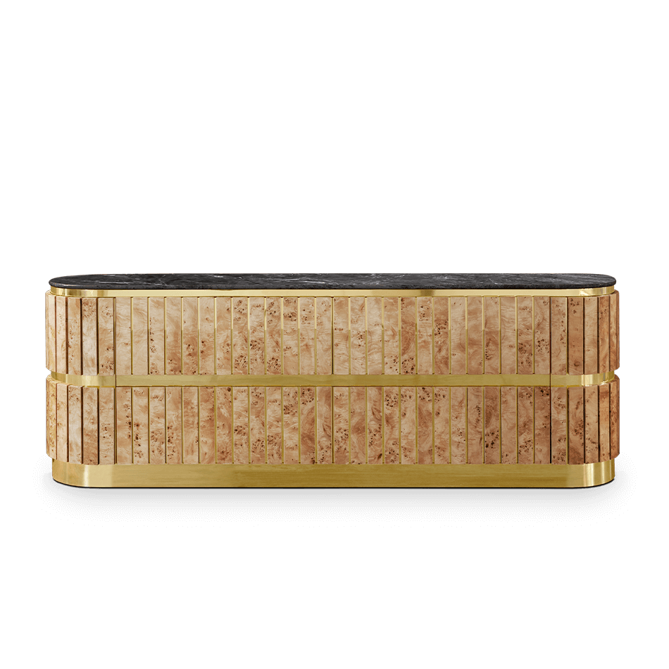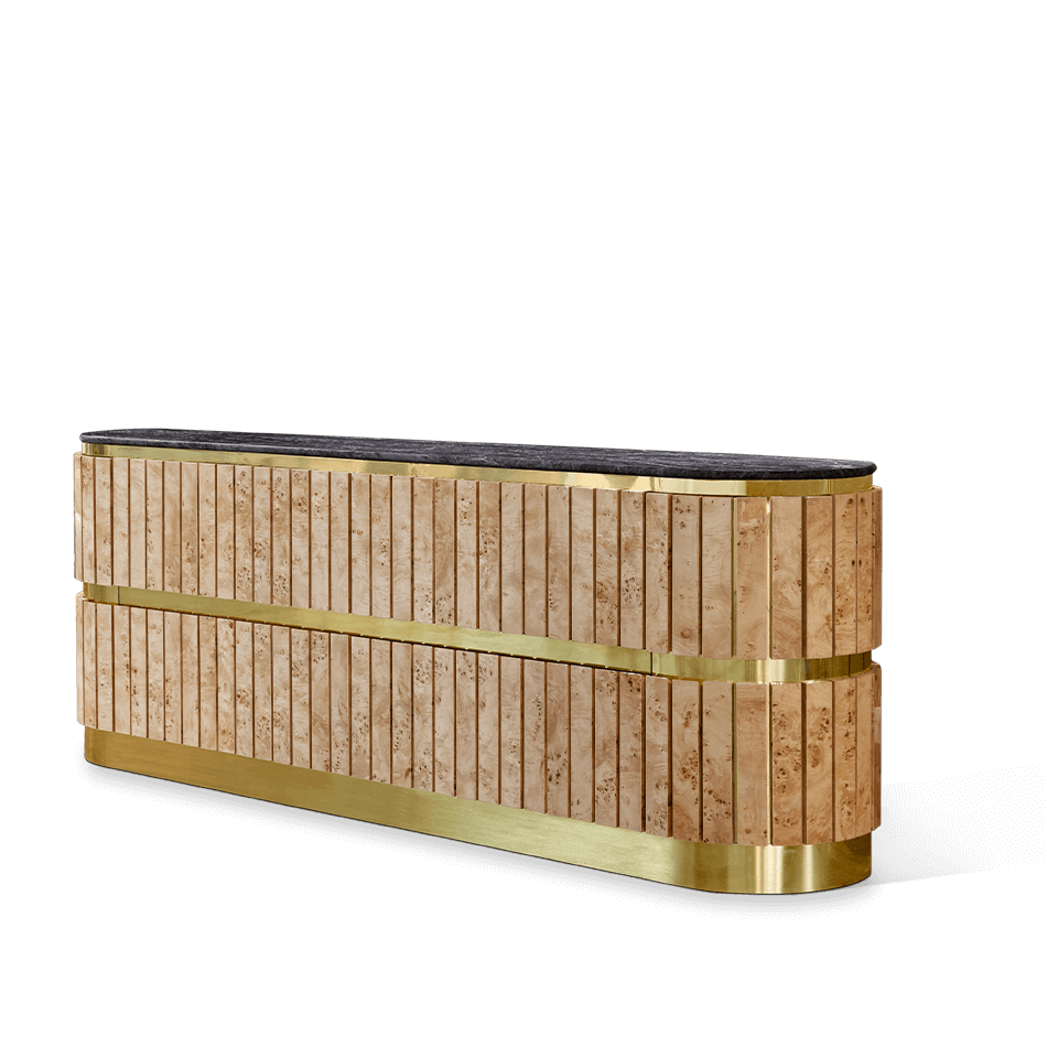 Made from high-quality materials such as brass, marble and velvet, Antin Sideboard showcases the best of mid-century design. A versatile piece for organizing and displaying items in the dining room, living room, or even the bedroom. Its understated yet striking presence adds a touch of retro charm to any interior, making it a popular choice.