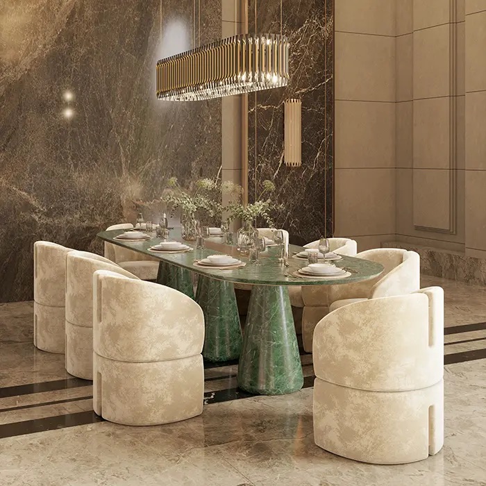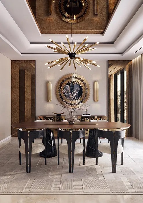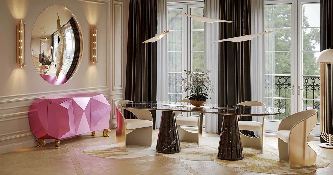 A modern dining table with capacity for 8 people, Bertoia is a majestic statement piece for any dining room. Refined solid marble, enhanced by a metal ring on the countertop. Curated trendy materials, a stunning homage to design. Perfect for your home decor, guaranteed to stun.