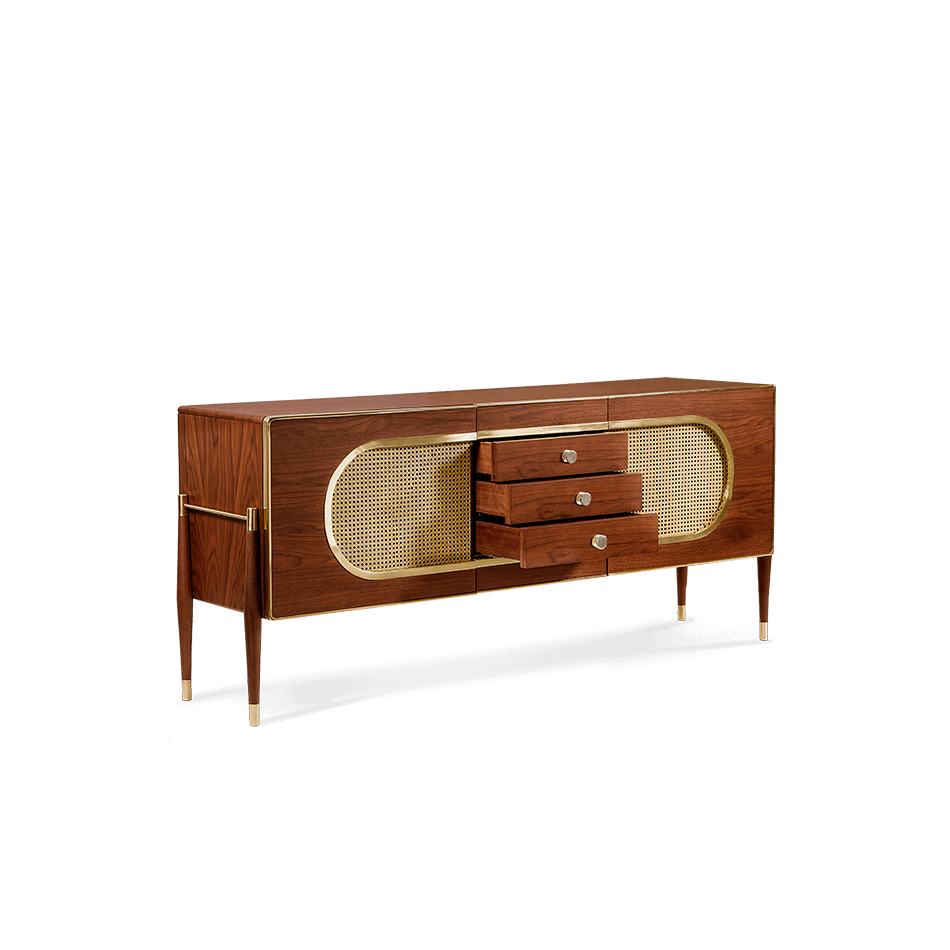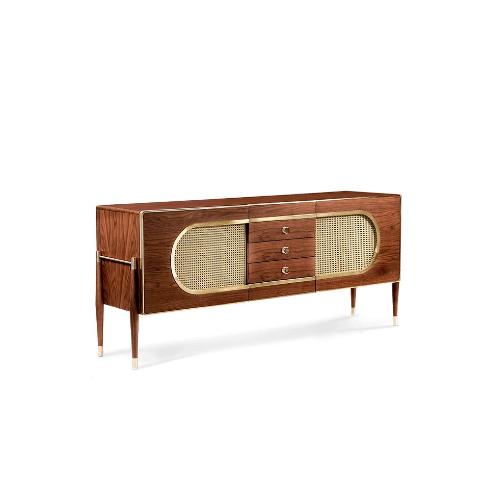 The Dandy sideboard is a perfect blend of Scandinavian and mid-century styles, resembling a kitsch radio with grill cloth doors. Its exciting shape makes it an unforgettable vintage piece. Versatile as a drinks cabinet, it fits perfectly in living or dressing rooms. Embrace the nostalgia and charm of this unique sideboard design.