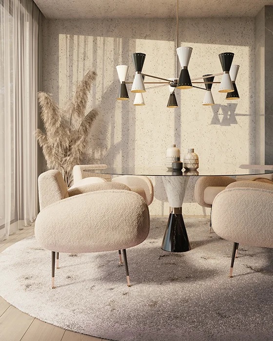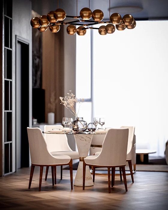 A dining table that uses the same elegant base as the Vinicius Side Table, its structure in solid marble makes for a strong presence in any dining room. Inspired by a curvy hourglass shape, its stunning design is modern and elegant, with a refined touch in the details.