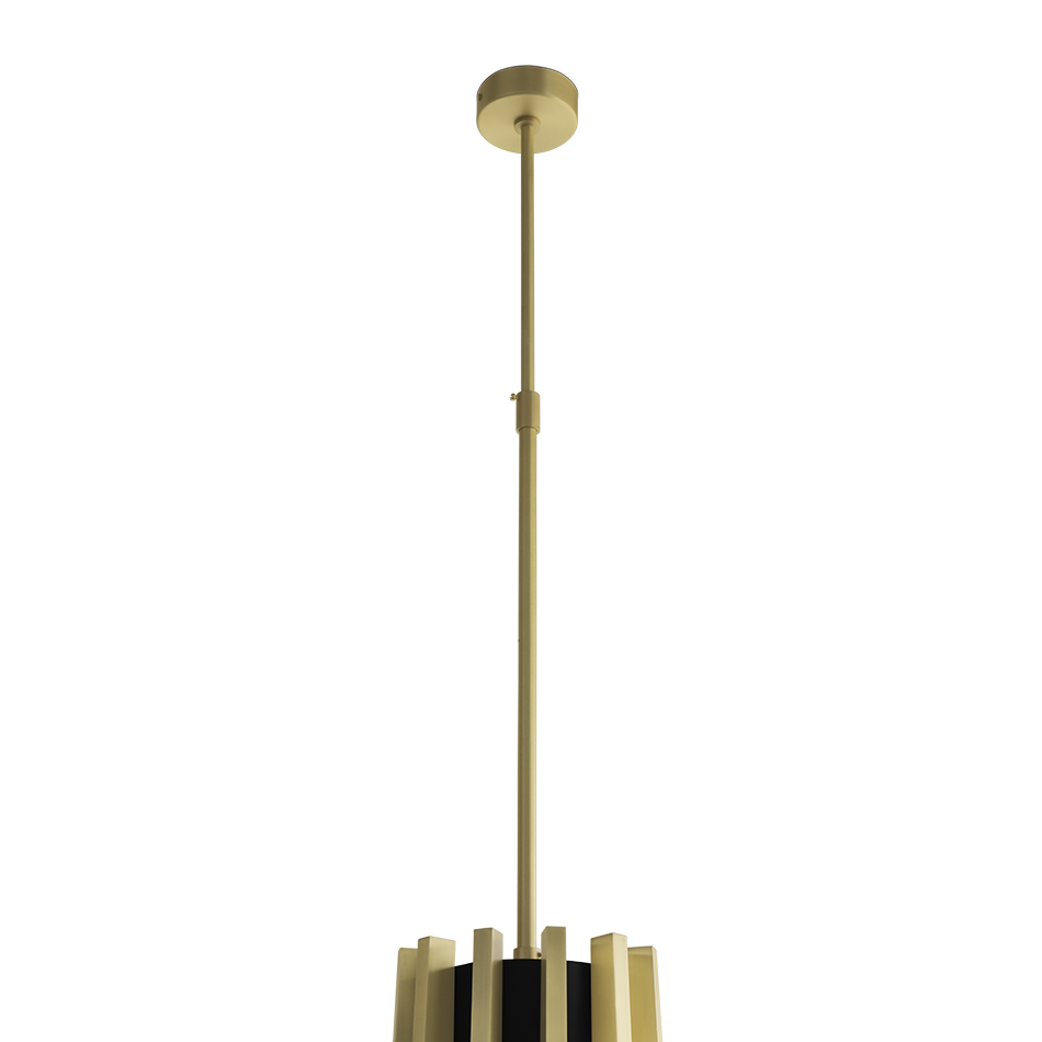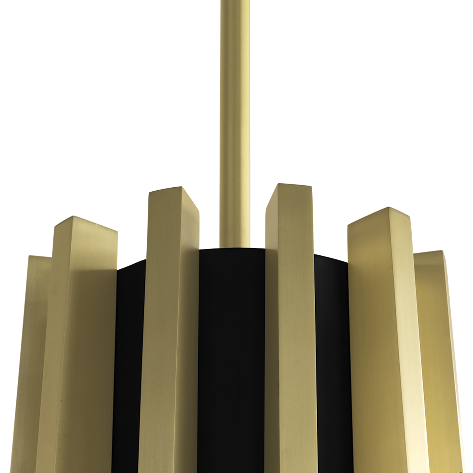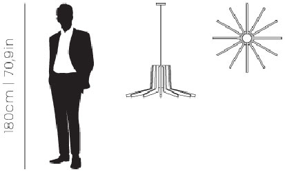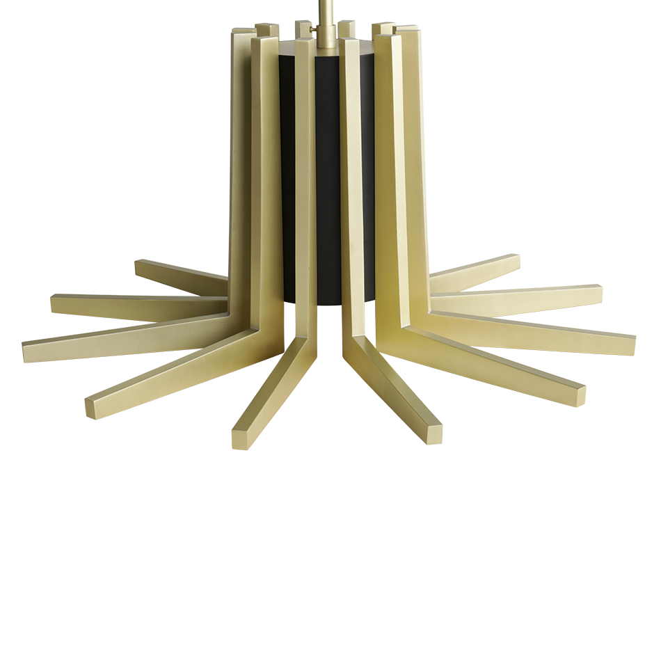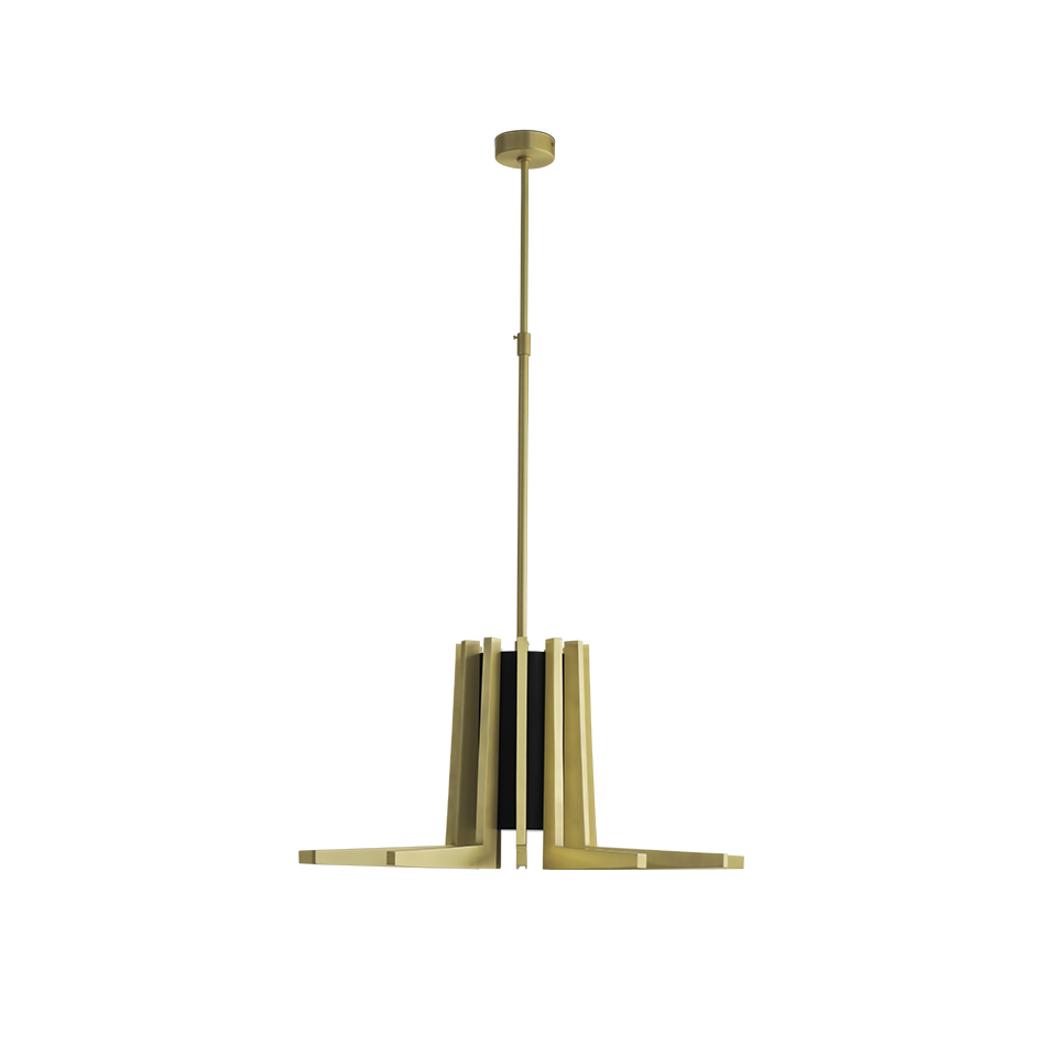 The Mina Suspension is inspired by Turin's Palazzo del Lavoro, featuring a stylized plant design with gilded branches. More than a simple lighting design, it creates a scenographic effect with a double light system: a central one for lighting the table and a strip led under each arm of the lamp for a more scenographic effect.
