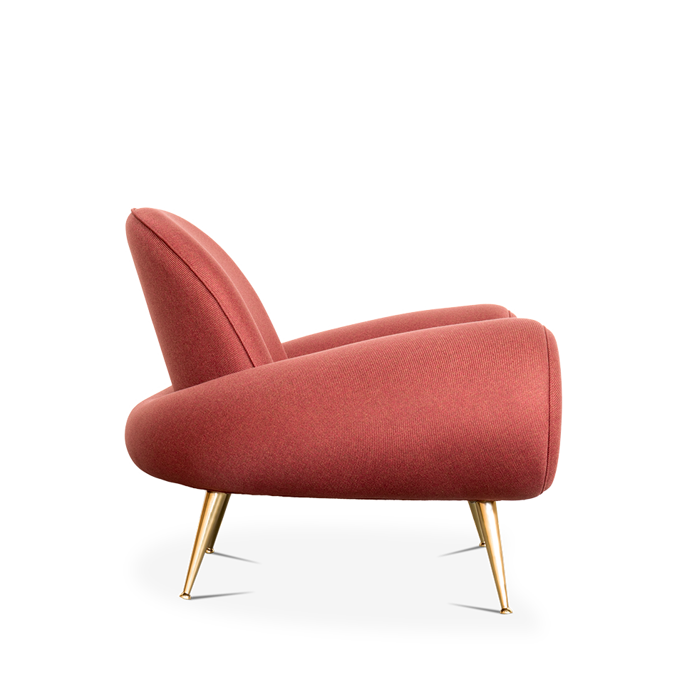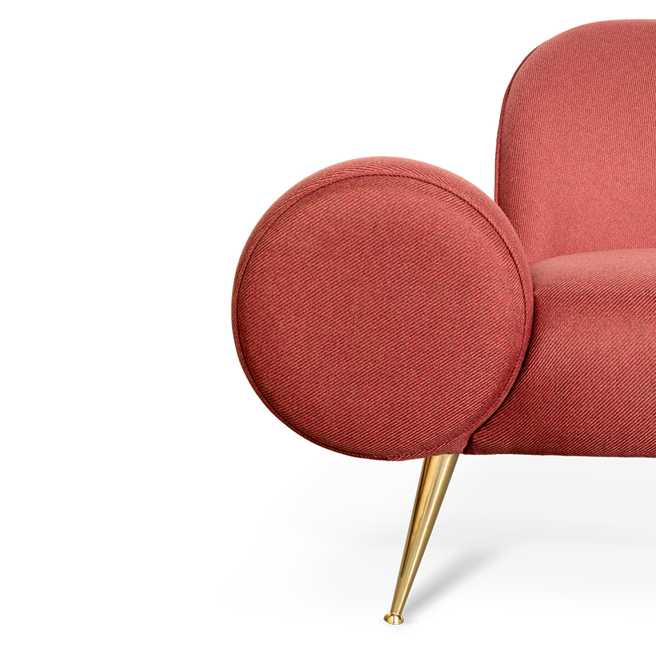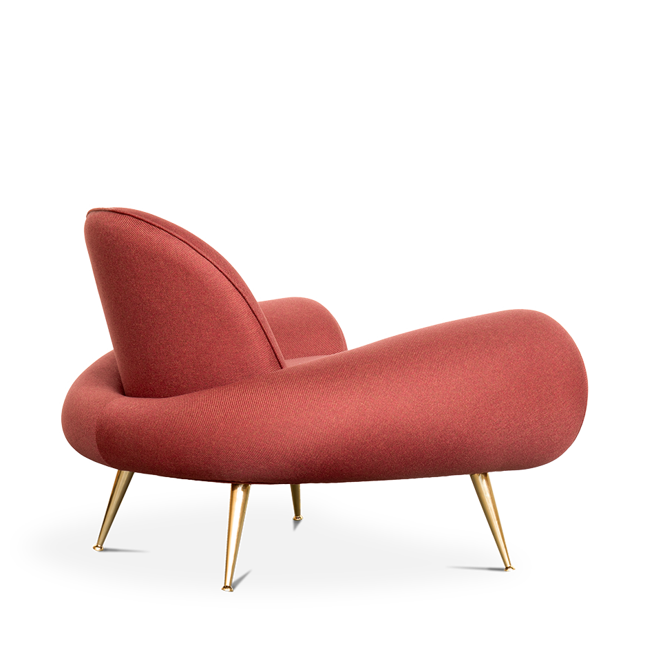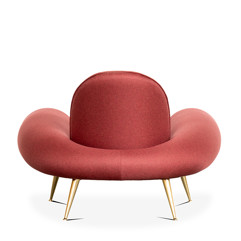 With space-age aesthetics, we present, Apollo armchair, a futuristic statement. Geometric lines with vintage charm, adorned with polished brass legs. A comfortable seat and reclined back, a singular design with a mid-century twist. Embrace the space-age inspiration and fall in love with this unique piece.